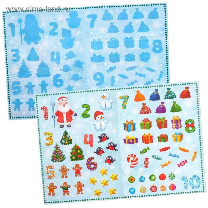 Книга с многоразовыми наклейками «Счёт на Новый год», 4 стр., формат А4, 65 наклеек