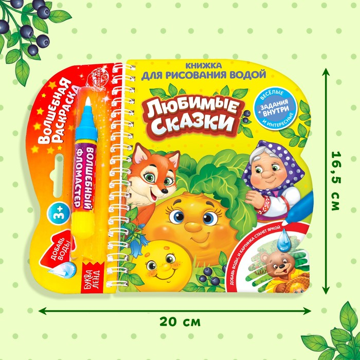 Книжка для рисования водой многоразовая «Любимые сказки» с водным маркером, 10 стр.