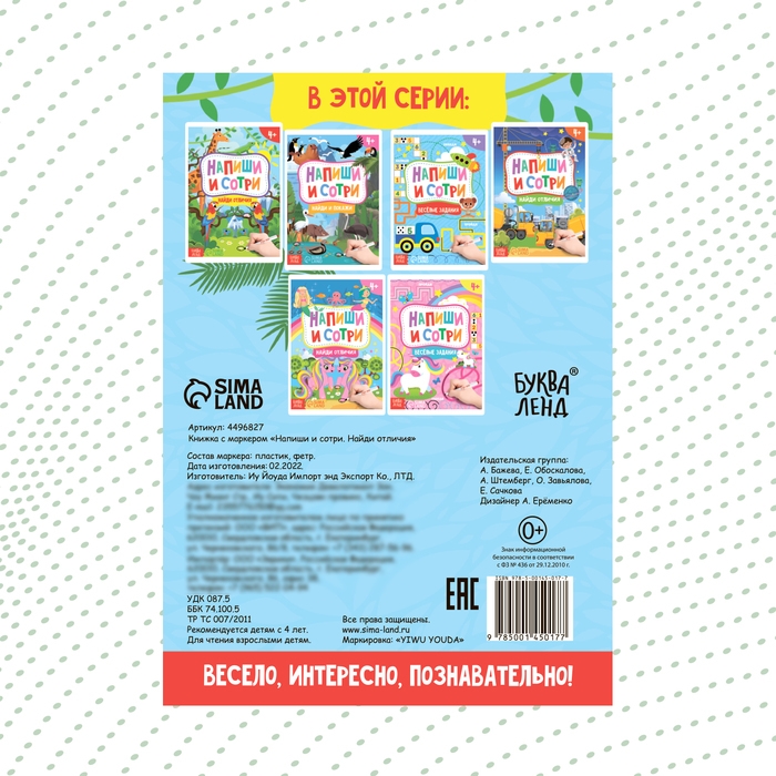 Книжка с маркером «Пиши-стирай: найди отличия» — универсальный сборник для развития у малыша мелкой моторики рук, внимания, зрения, цветового восприятия, памяти, мышления.