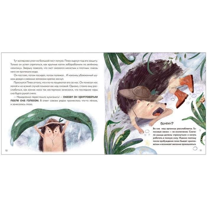 Однажды во время прогулки по лесу ёжик Плюх познакомился с Капелькой. Но внезапно она исчезла! Встреча с прекрасным всегда оставляет след. Ёжик Плюх, как настоящий романтик и начинающий натуралист, непременно хочет раскрыть тайну исчезновения новой подруги. Трогательная сказка дополнена научными фактами о том, как вести себя в лесу во время дождя, как происходит круговорот воды в природе и т.д. А также наглядными сюжетными иллюстрациями.