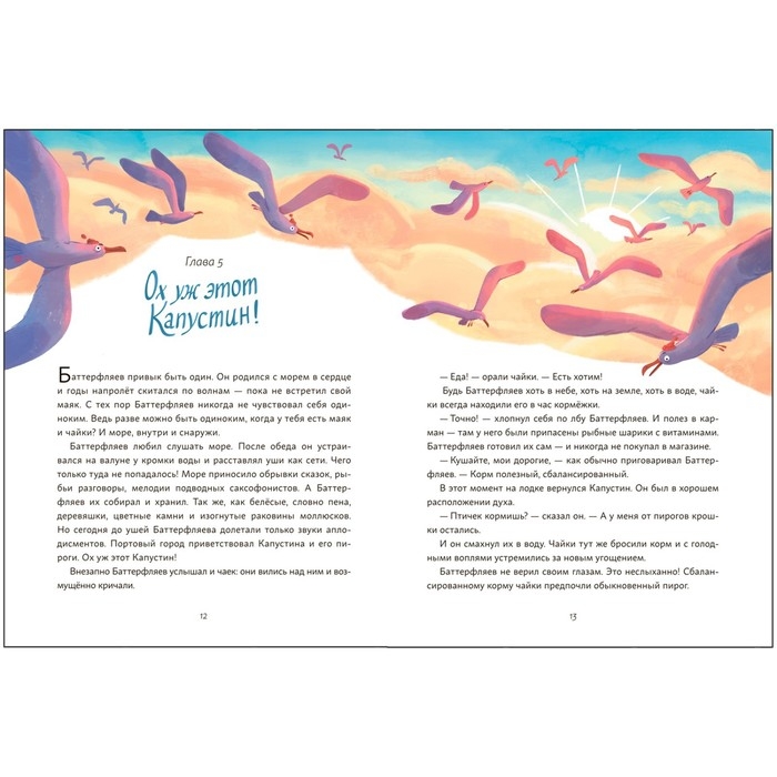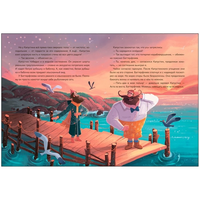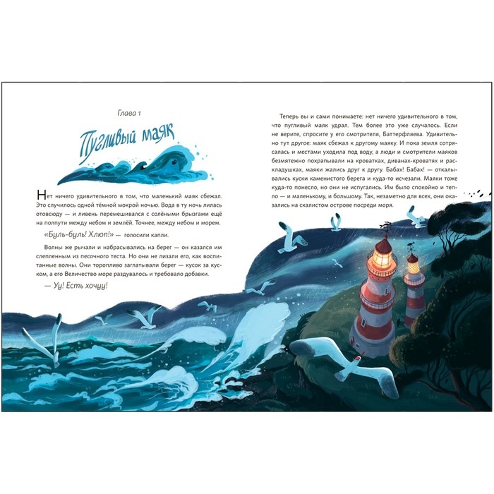 Книга «Капустин, Баттерфляев и два маяка» серии «Книжный клуб. Почитаем вместе?» — это история о двух маяках, маленьком и большом, и о двух смотрителях-соседях. Первый, Капустин, печет пироги с морской капустой, а второй, Баттерфляев, признает только бутерброды с селёдкой. Первый не умеет плавать, а второй плавает как рыба. Как двум смотрителям ужиться на одном острове и решить, кто из них зажжёт свой маяк?