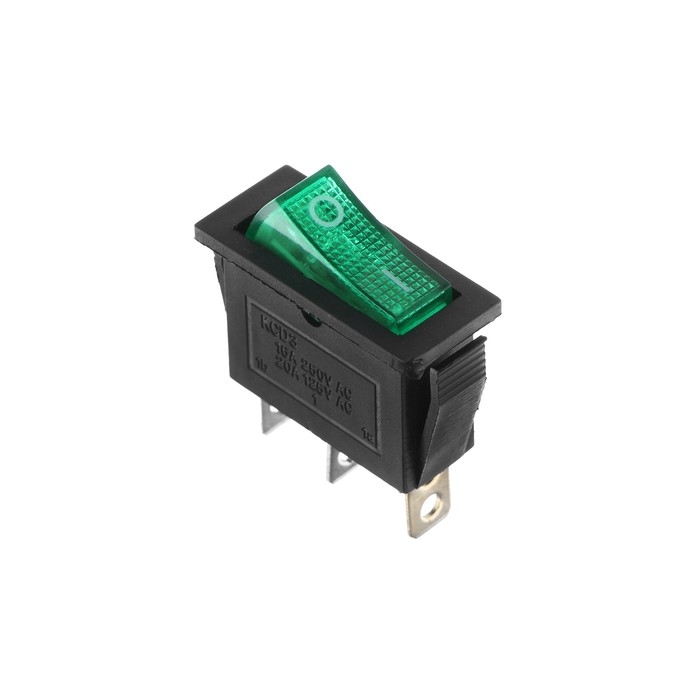 Клавишный переключатель двухпозиционный ON-OFF с фиксацией, с подсветкой, 3 контакта. Допустимое напряжение AC - 15 A/250 В, 20 A/125 В