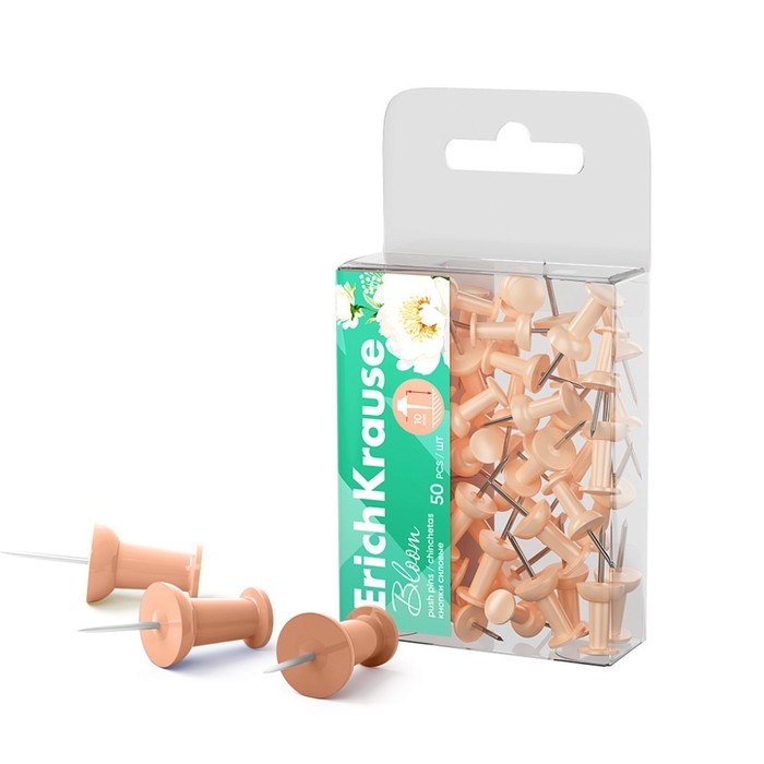Кнопки силовые ErichKrause "Pastel Bloom", 50 штук, персиковые, в пэт-боксе