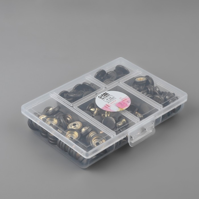Кнопки установочные, Дельта, d = 15 мм, 40 шт, с установщиком, в органайзере, 11,8 × 8,1 × 2,3 см, цвет чёрный никель