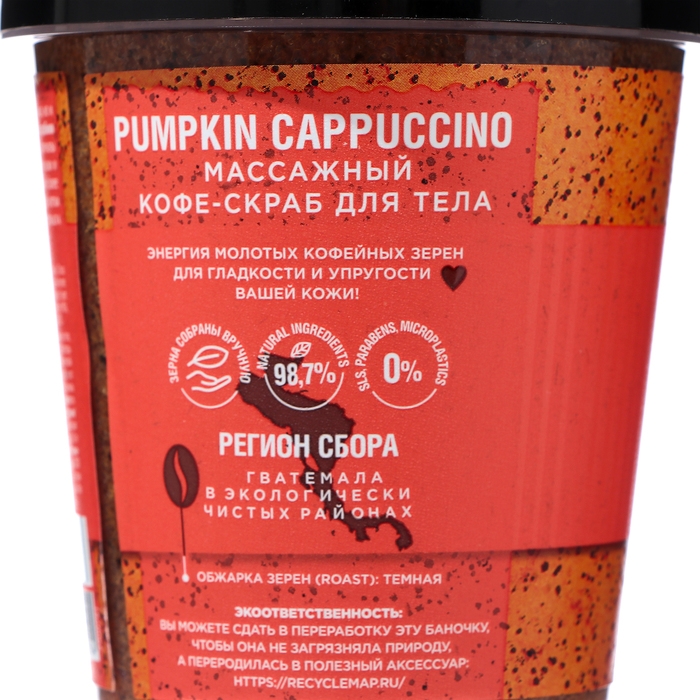 Состав: Sucrose, Coffea Arabica Fruit Powder, Citrus Aurantium Amara Peel, Cucurbita Pepo Fruit, Aqua, Glycerin, Xanthan Gum, Avena Sativa Kernel Extract, Caffeine, Persea Gratissima Oil, Curcuma Longa Leaf Extract, Cucurbita