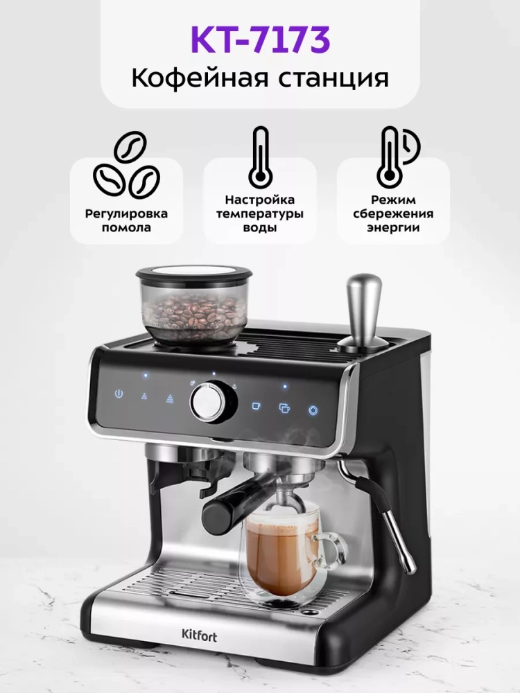 Кофейная станция кофеварка рожковая КТ-7173 - 1550 Вт