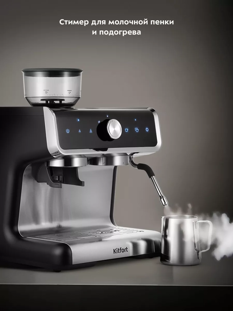 Кофейная станция поможет приготовить кофе эспрессо, капучино или латте, а также множество других видов кофе на ваш вкус. С помощью стимера вы можете приготовить молочную пенку, а также подогреть паром остывший чай или молоко.