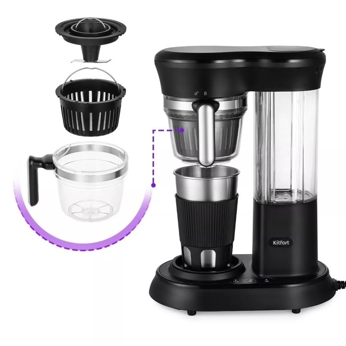 Кофемашина Kitfort КТ-7141, 600/120 Вт, 50 г, 0.45 л, чёрная