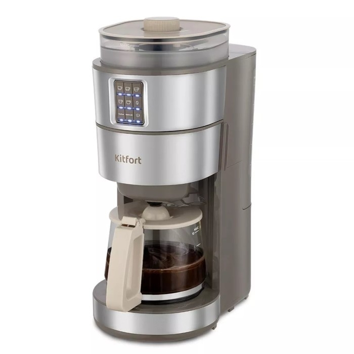 Кофемашина Kitfort КТ-7204, капельная, 1000 Вт. 1.38 л, серебристый