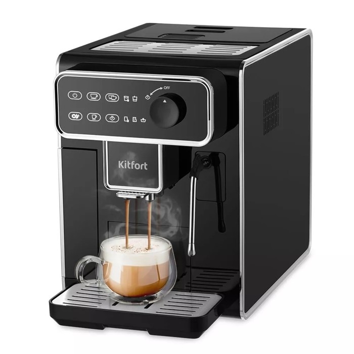 Кофемашина Kitfort КТ-7256, автоматическая, 1350 Вт, 1.5 л, чёрная