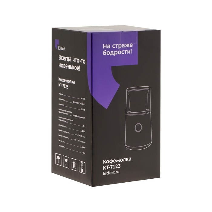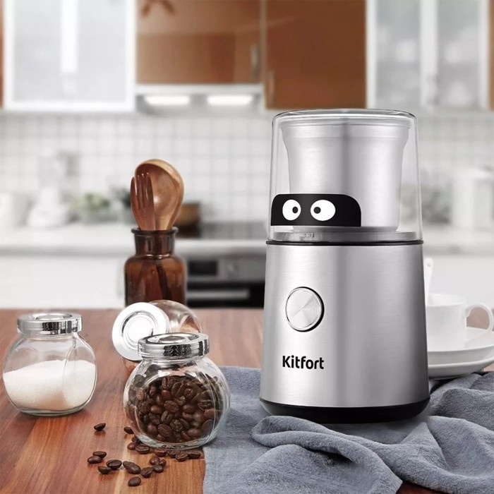 Кофемолка Kitfort КТ-7123, ножевая, 200 Вт, 85 г, серебристая