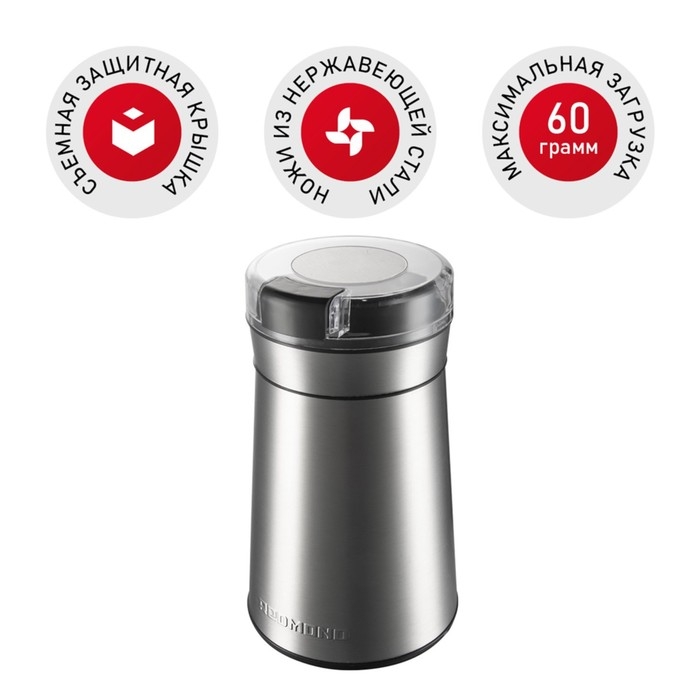 Кофемолка REDMOND RCG-M1608, электрическая, ножевая, 160 Вт, 60 г, серебристая