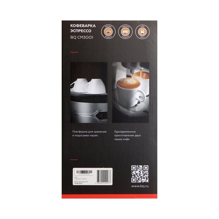 Кофеварка BQ CM3001, рожковая, 1450 Вт, 1 л, бело-серебристая
