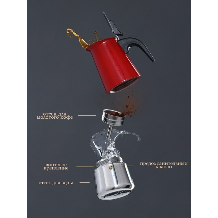 Кофеварка гейзерная «Итальяно», 450 мл, на 9 чашек, цвет красный
