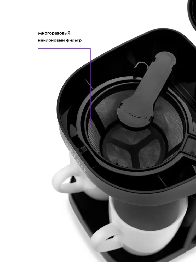 Капельная кофеварка Kitfort КТ-764 позволяет приготовить ароматный кофе. В капельной кофеварке вода доводится до температуры 80-90 *С, после чего медленно поступает в фильтр с молотым кофе. Пройдя через него, она попадает в кружки. Кофеварка включается и выключается одной кнопкой. Резервуар емкостью 250 мл приготовит для вас кофе на две кружки, которые идут в комплекте. Кофеварка Китфорт легкая и занимает очень мало места, что очень удобно в квартирах с маленькими кухнями. Кофеварка предназначена для приготовления кофе в домашних условиях или в офисе.