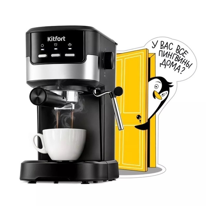 Кофеварка Kitfort КТ-7211, рожковая, 1100 Вт, 1.25 л, капучинатор, чёрная