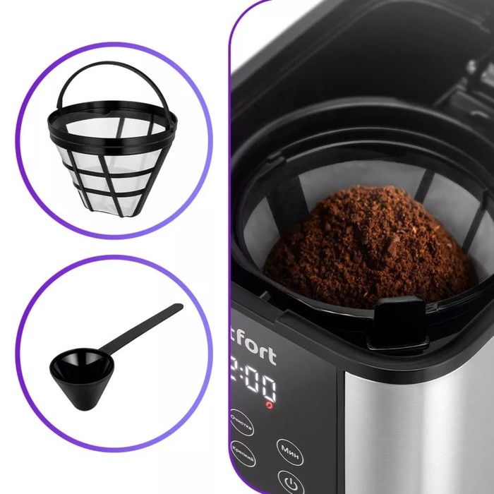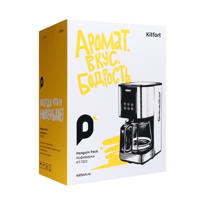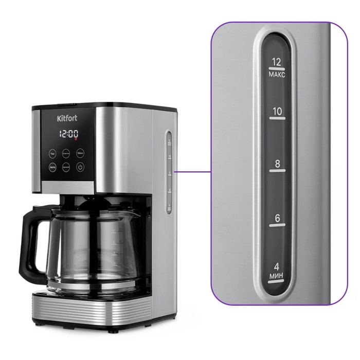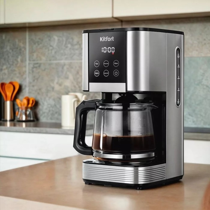 Кофеварка Kitfort КТ-7222, капельная, 1000 Вт, 1.5 л. Чёрно-серебристая