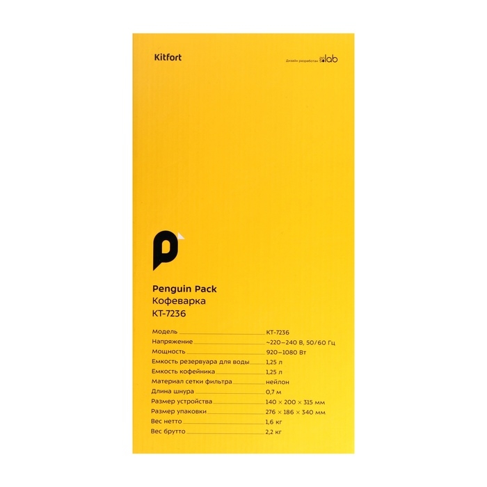 Кофеварка Kitfort КТ-7236, капельная, 1080 Вт, 1.25 л, чёрная