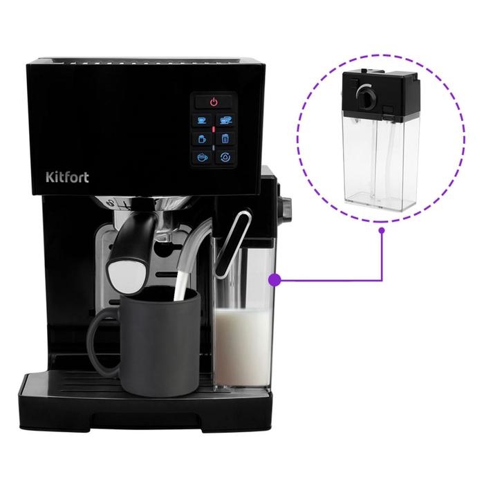 Кофеварка Kitfort КТ-743, рожковая, 1400 Вт, 1.4/0.4 л, чёрная
