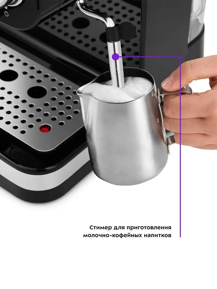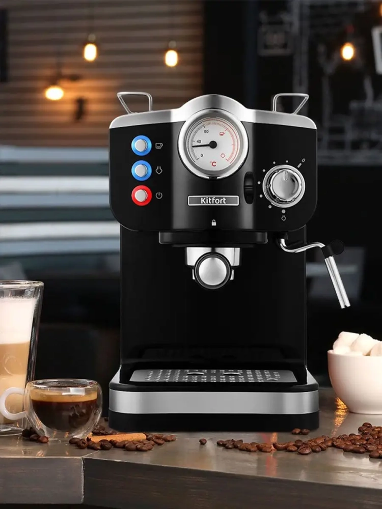 Рожковая кофеварка Китфорт КТ-739 поможет приготовить кофе эспрессо, капучино или латте, а также множество других видов кофе на ваш вкус. С помощью рожковой кофеварки вы можете подогреть паром остывший чай или молоко.