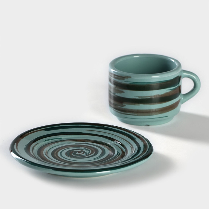 Кофейная пара керамическая «Уютный дом», 2 предмета: чашка 180 мл, блюдце d=12,5 см, цвет МИКС