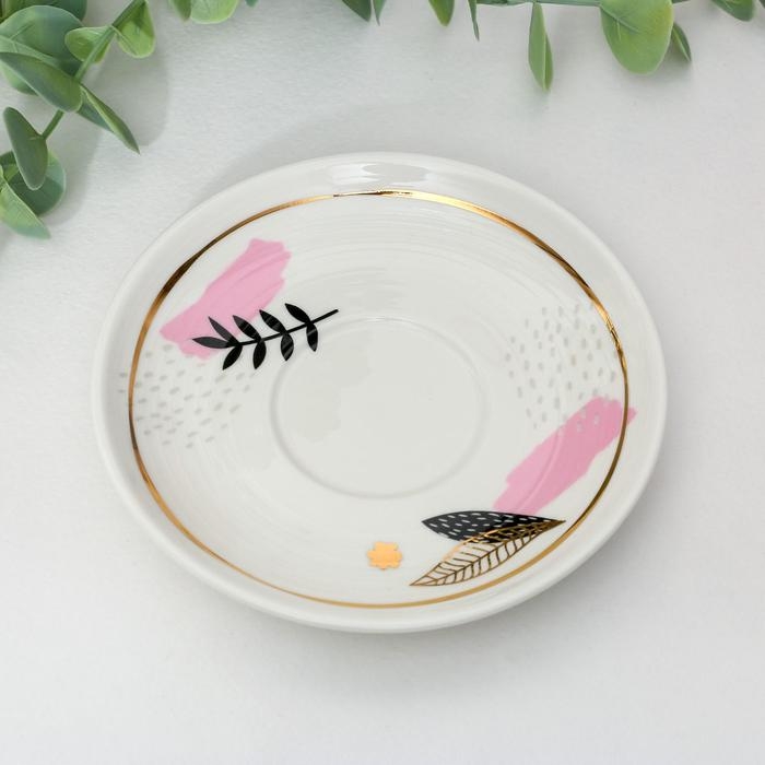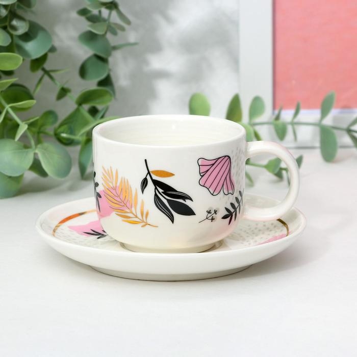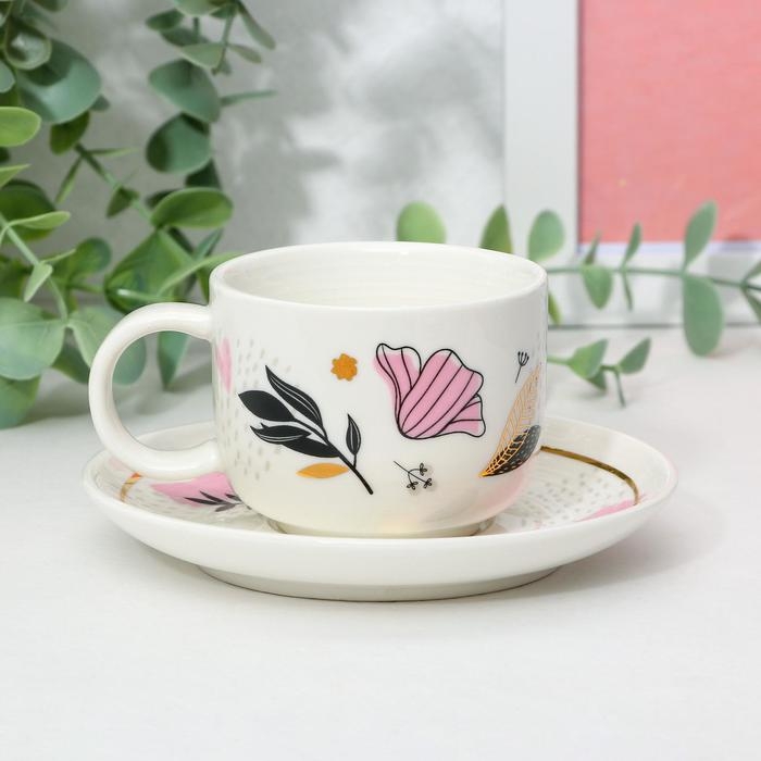 Кофейная пара из керамики «Цветы», 140 мл, цвет белый