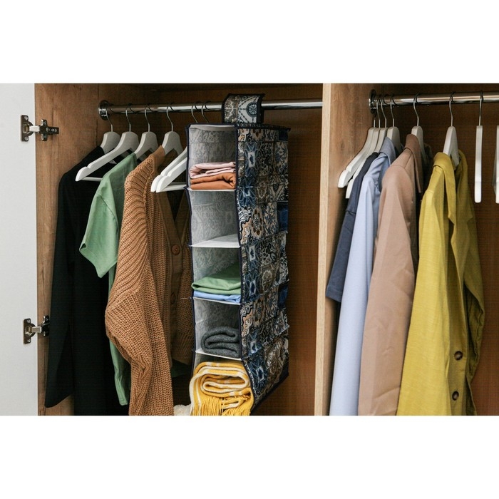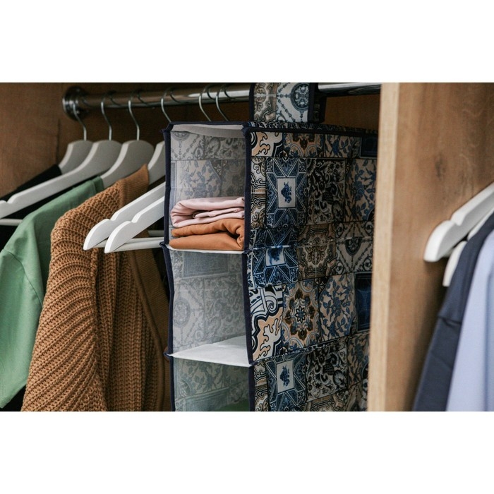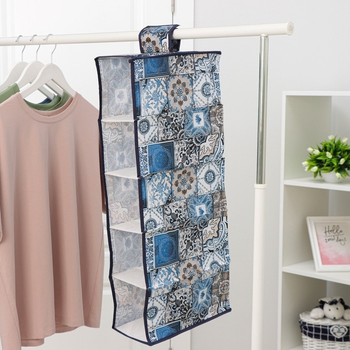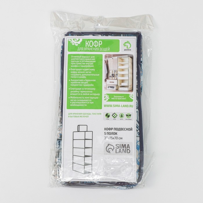 Кофр подвесной Доляна «Мозаика», 5 отделений, 30×15×70 см, цвет синий