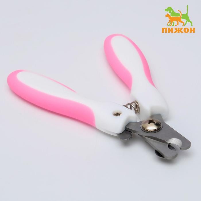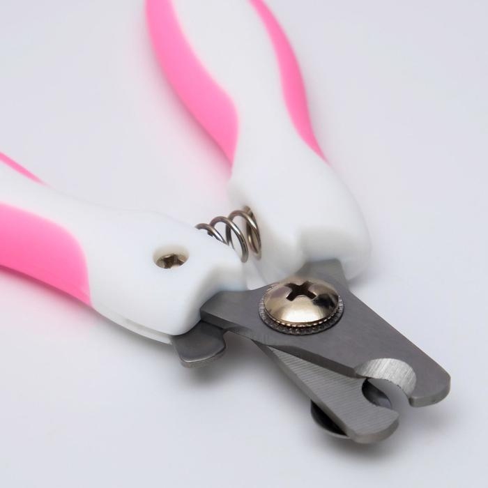 Когтерез боковой средний эргономичный, отверстие 11 мм, розовый с белым