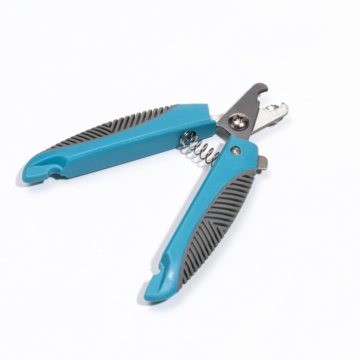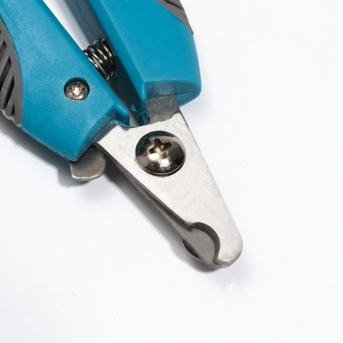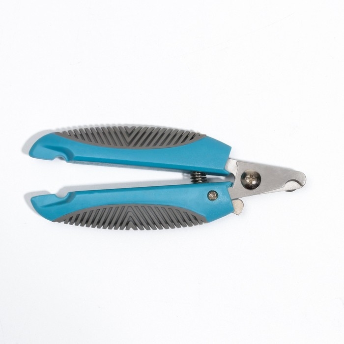 Ножницы-когтерезы изогнутые с прорезиненными ручками, отверстие 6 мм, тёмно-синие