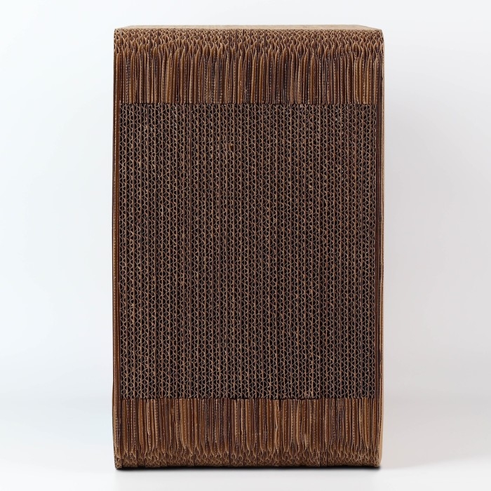 Изделие из гофрокартона выполнено из натуральных материалов и безопасно для когтей котов и кошек. Структура когтеточки напоминает питомцам кору дерева, поэтому изделие привлекает их внимание и является антистрессом.