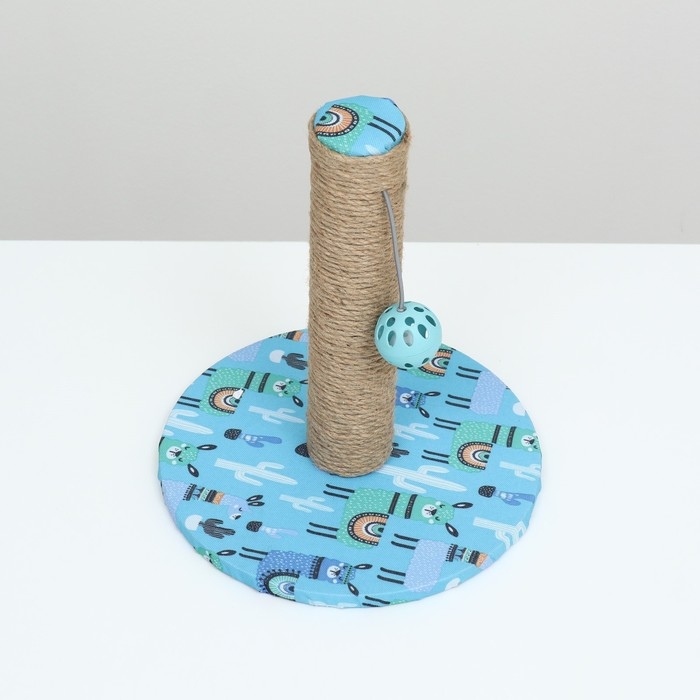 Когтеточка "Столбик" с площадкой и игрушкой, 30 х 52 см, джут, микс цветов