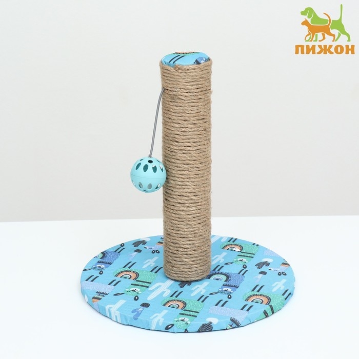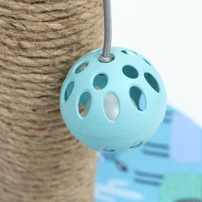 Когтеточка-столбик "Пижон" с шариком, 29 х 29 х 32 см, джут, ткань ПВХ, бирюзовая