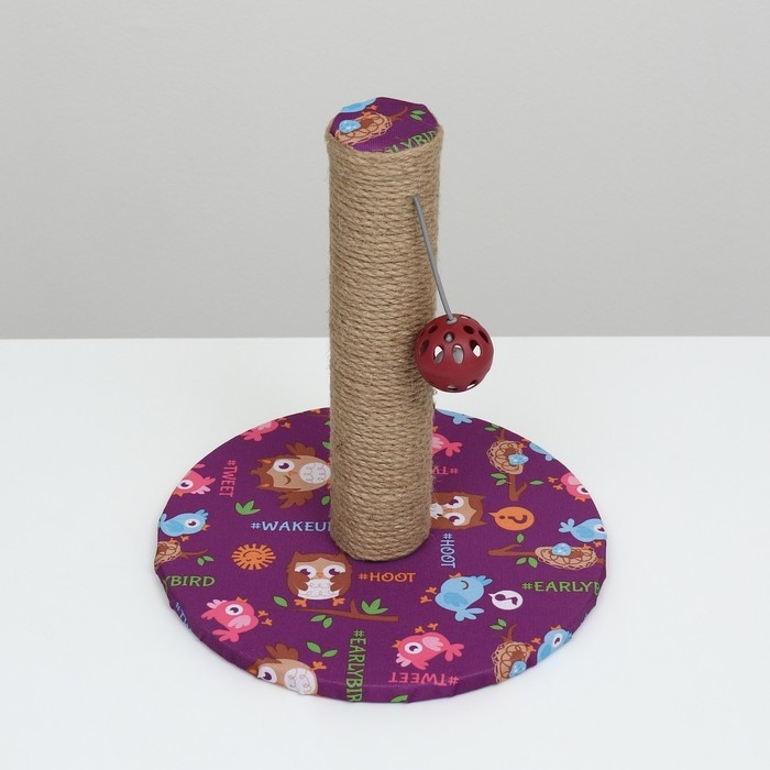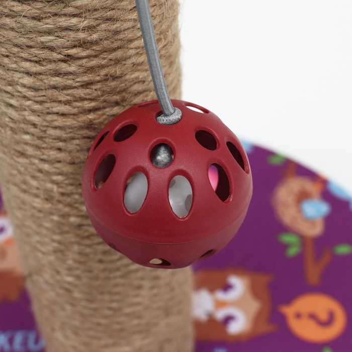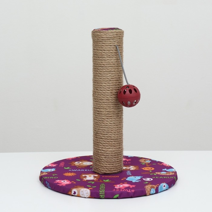 Когтеточка-столбик "Пижон" с шариком, 29 х 29 х 32 см, джут, ткань ПВХ, фиолетовая