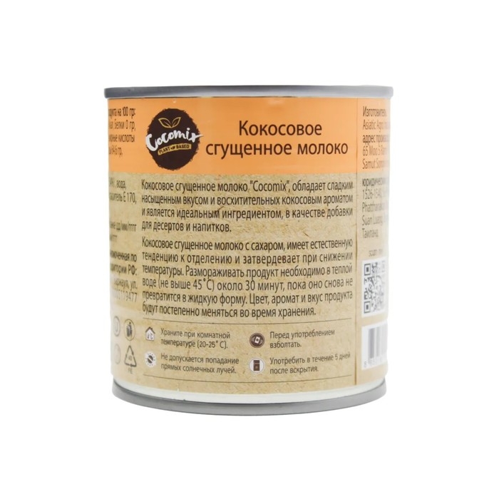 Кокосовое сгущенное молоко Cocomix - это растительная сгущенка на основе кокосовых сливок с сладким, насыщенным вкусом и восхитительным кокосовым ароматам. Является идеальным ингредиентом в качестве добавки для десертов и напитков. Кокосовая сгущенка не содержит молочных продуктов, не содержит лактозу, без консервантов, без холестерина.