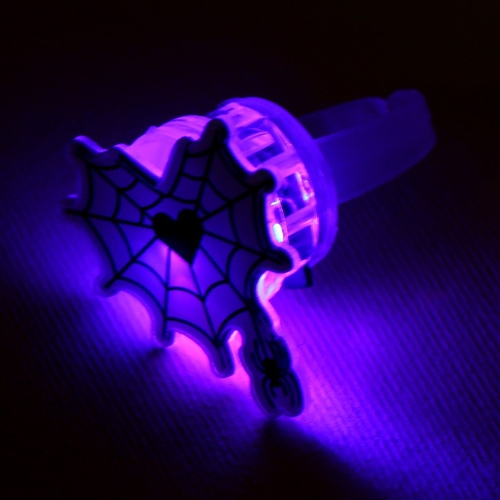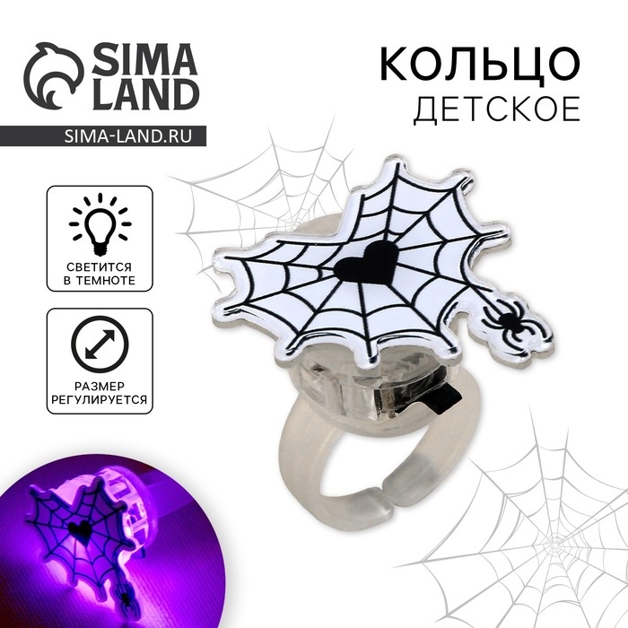 Кольцо детское с огоньком на Хэллоуин «Паутина», безразмерное.