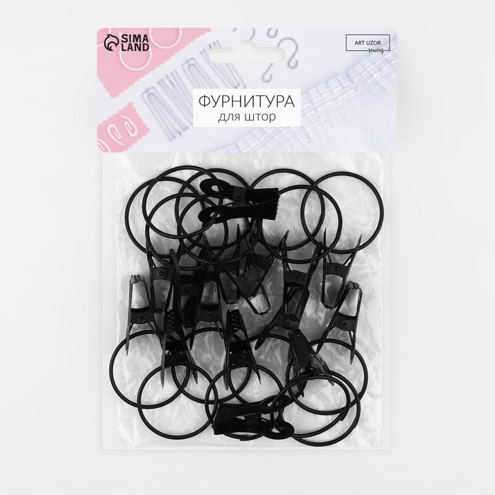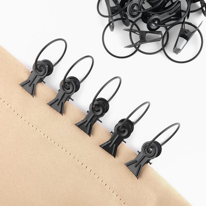 Кольцо для карниза, с зажимом, d = 32/36 мм, 20 шт, цвет чёрный