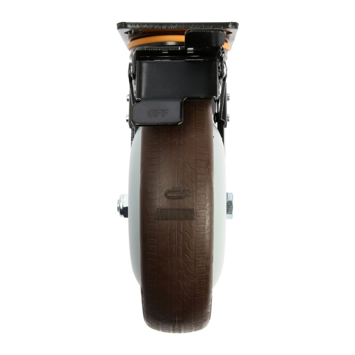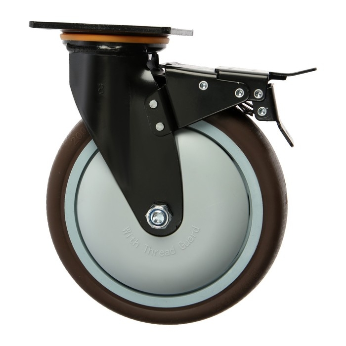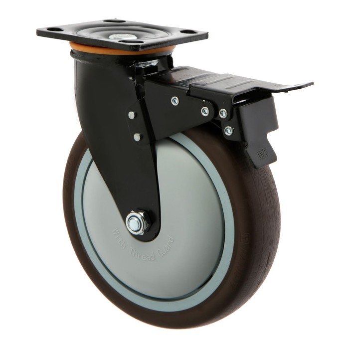 Колесо для трансп. тележек поворотное ТУНДРА, d=200 мм, на пдощадке, со стопорм, покрытие TPR 9917