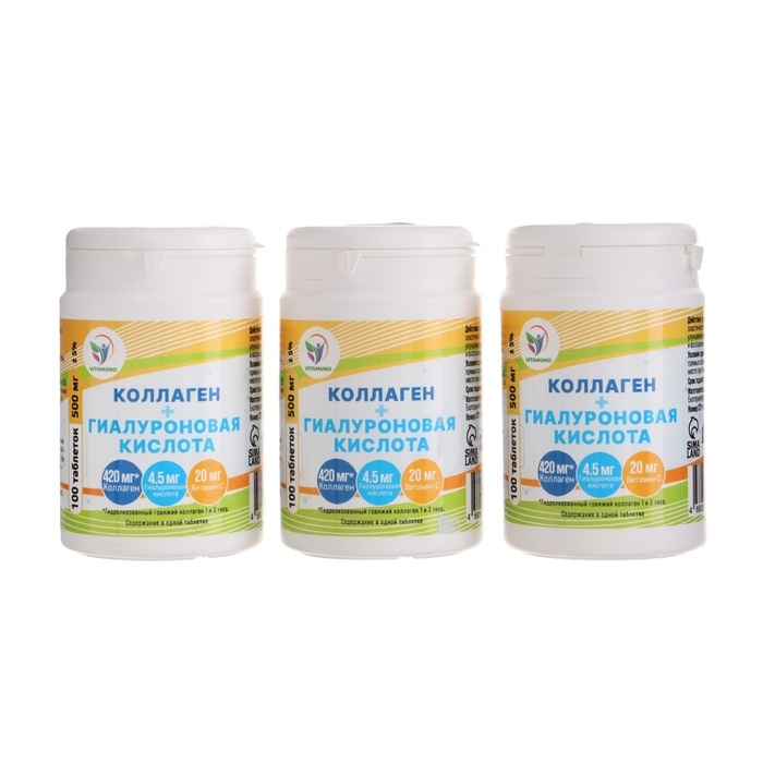 Коллаген + Гиалуроновая кислота, витамин С Vitamuno, 3 упаковки по 100 таблеток