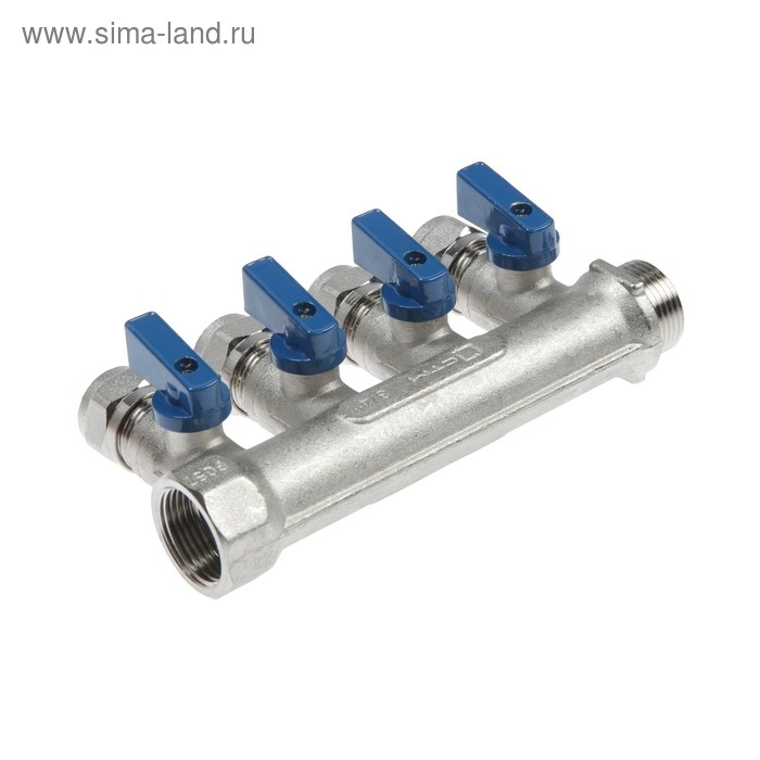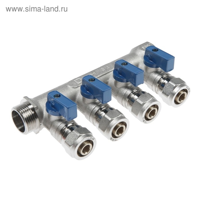 Коллектор "СТМ", 3/4"х16 мм, 4 выхода, с шаровыми кранами, для м/п труб, никелированный