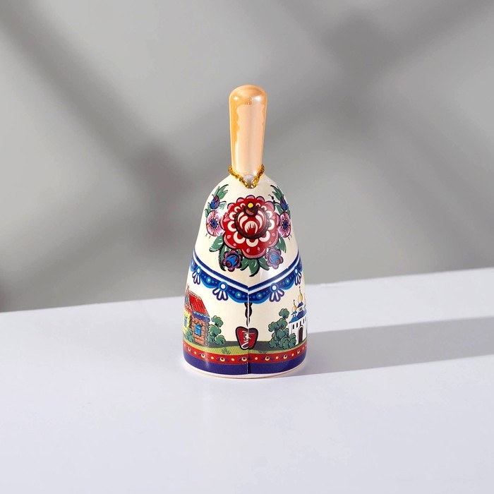 Колокольчик с ручкой "Матрешка" 8 см, малая, керамика,
