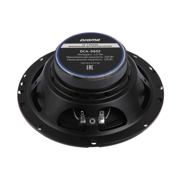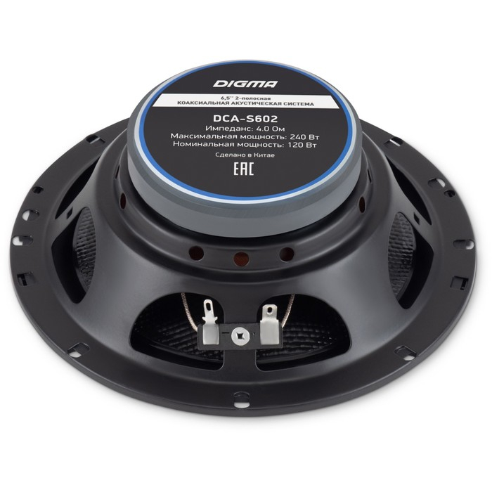 Колонки автомобильные Digma DCA-S602, 240 Вт, 86 дБ, 4 Ом, 16.5 см, комплект 2 шт, без решетки