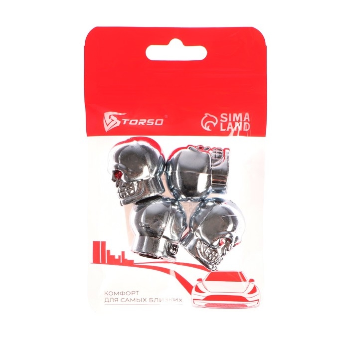 Колпачок на вентиль TORSO, Череп, хром, набор 4 шт