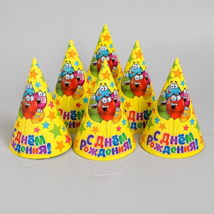 Колпак бумажный «С днём рождения», весёлые шары, набор 6 шт., 16 см