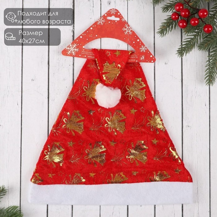 Колпак новогодний "Колокольчики" 40х27 см, красный