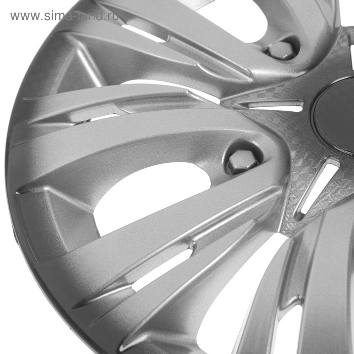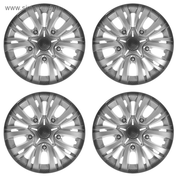 Колпаки колесные R13 "ЛИОН", серебристо-черный карбон, набор 4 шт