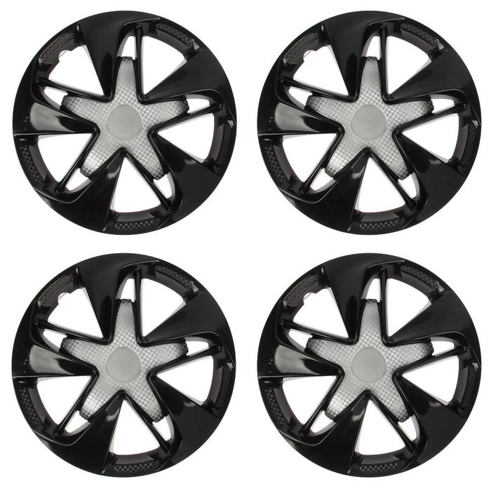 Колпаки колесные R13 "СУПЕР АСТРА", серебристо-черный карбон, набор 4 шт