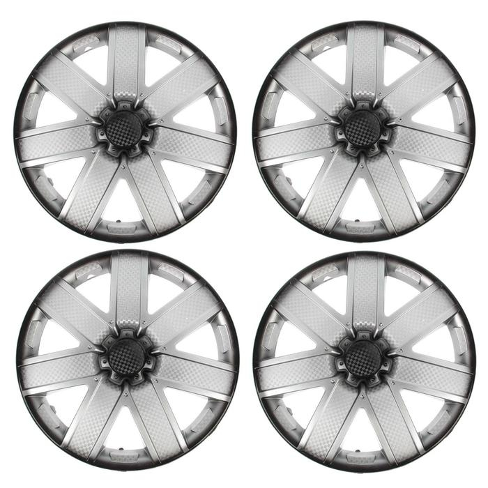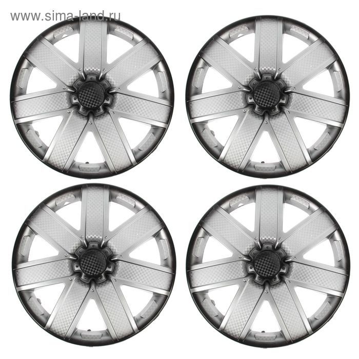 Колпаки колесные R14 "ГАЛАКСИ", серебристо-черный карбон, набор 4 шт
