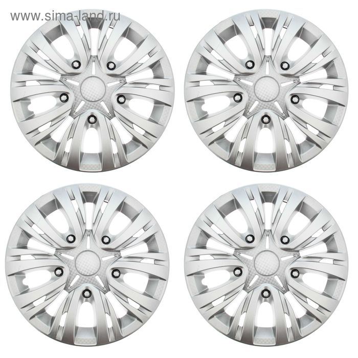 Колпаки колесные R14 "ЛИОН", серебристый карбон, набор 4 шт