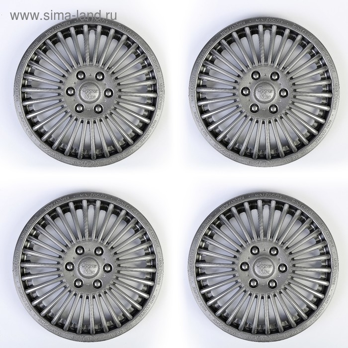 Колпаки колесные R14 "МИНИ-КУПЕР", серебристый, набор 4 шт