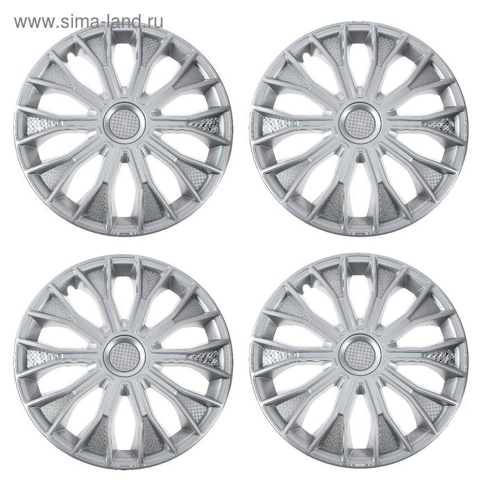 Колпаки колесные R14 "ВОЛТЕК", серебристый, карбон, набор 4 шт